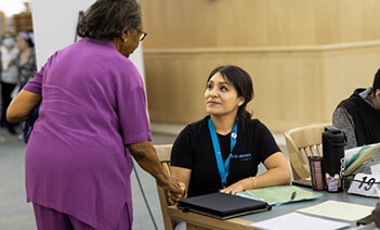 Start by meeting a volunteer who’ll review your paperwork and ensure you’re all set for our free tax service.